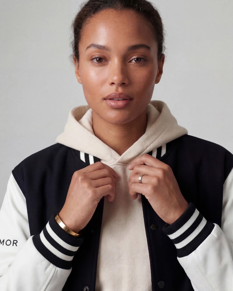 RADMOR Golf has introduced the Team Varsity Jacket — a reimagined version of the traditional American letterman jacket. Priced at $295, this product merges a heavy 24-ounce melton wool body with genuine leather sleeves.
