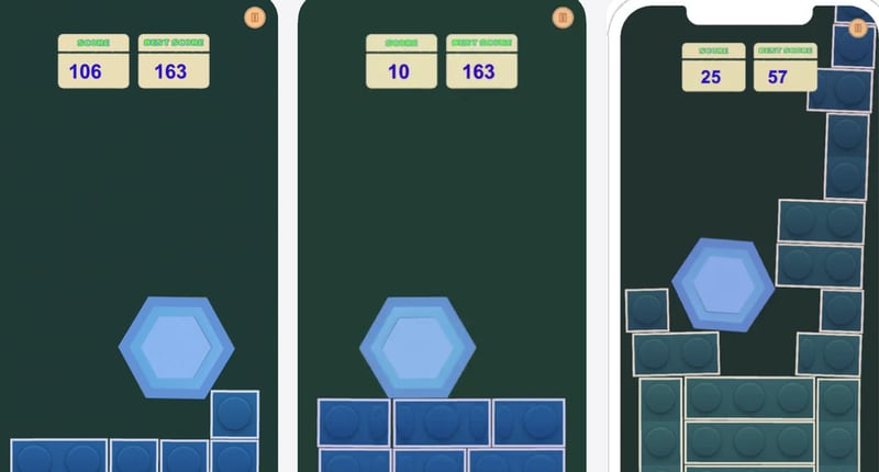 Tower of Hexagons is a minimalist mobile puzzle game centred on stacking physics-based hexagonal blocks to construct a stable tower structure. The gameplay involves timing and spatial decision-making, as users place falling shapes to maximise height while maintaining balance and preventing collapse.