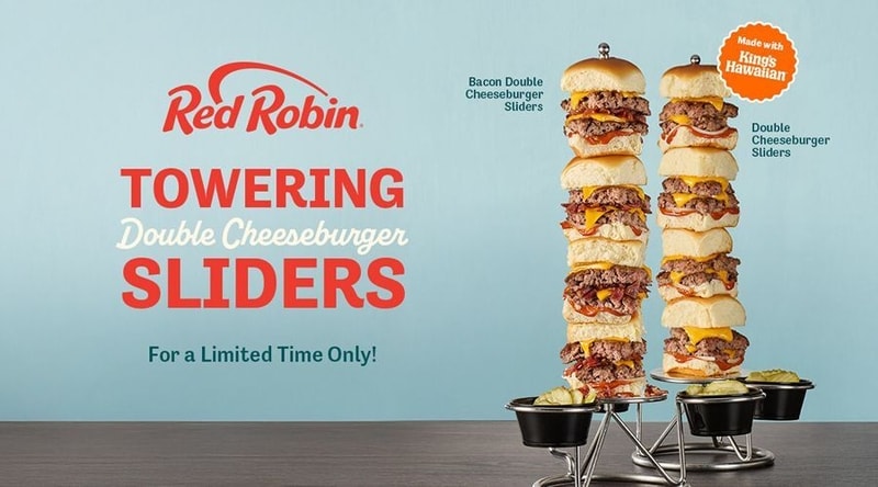 At most restaurants, a slider is a small and often unsatisfying experience that leaves you craving more. To ensure guests do not walk away hungry, Red Robin has created the Towering Double Cheeseburger Sliders, which feature meaty morssels served stacked on the brand's iconic tower stand. Each tower features four sliders made with juicy double beef patties, double the cheese, and toasted King’s Hawaiian Rolls. There's also the Towering Double Bacon Cheeseburger Sliders, which include hardwood-smoked bacon crumbles. As Brian Sullivan, Executive Chef and Vice President of Culinary & Beverage Innovation of Red Robin, explains, “Our sliders are bigger, juicier and unmistakably different, featuring double beef patties, double cheese and fan-favorite King’s Hawaiian Rolls, served stacked on our iconic tower. It’s a bold new slider experience that’s turning heads and making guests say, ‘Wait, I want that!'”