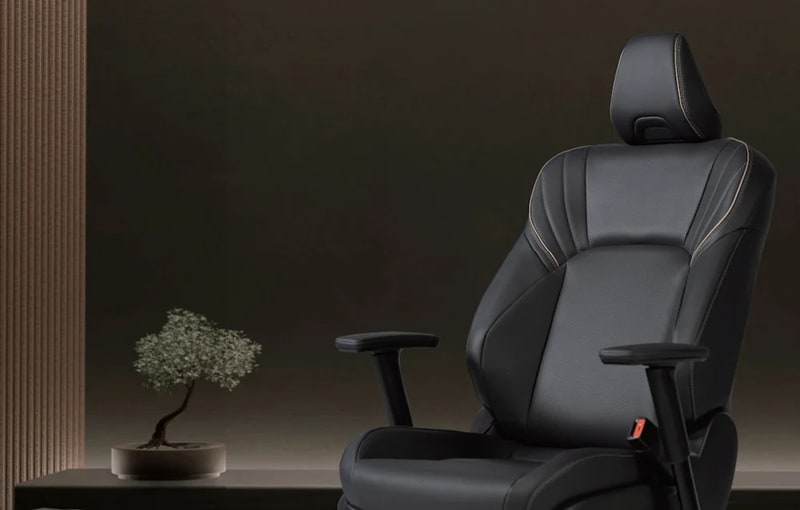 The design includes a seatbelt buckle reworked to house a USB-C port, enabling device charging directly from the chair. Armrest and control elements are adjusted to suit desk use, while maintaining the ergonomic profile developed for long driving periods. Materials follow automotive specifications, with durable upholstery and internal support systems carried over from Toyota’s seating construction.
